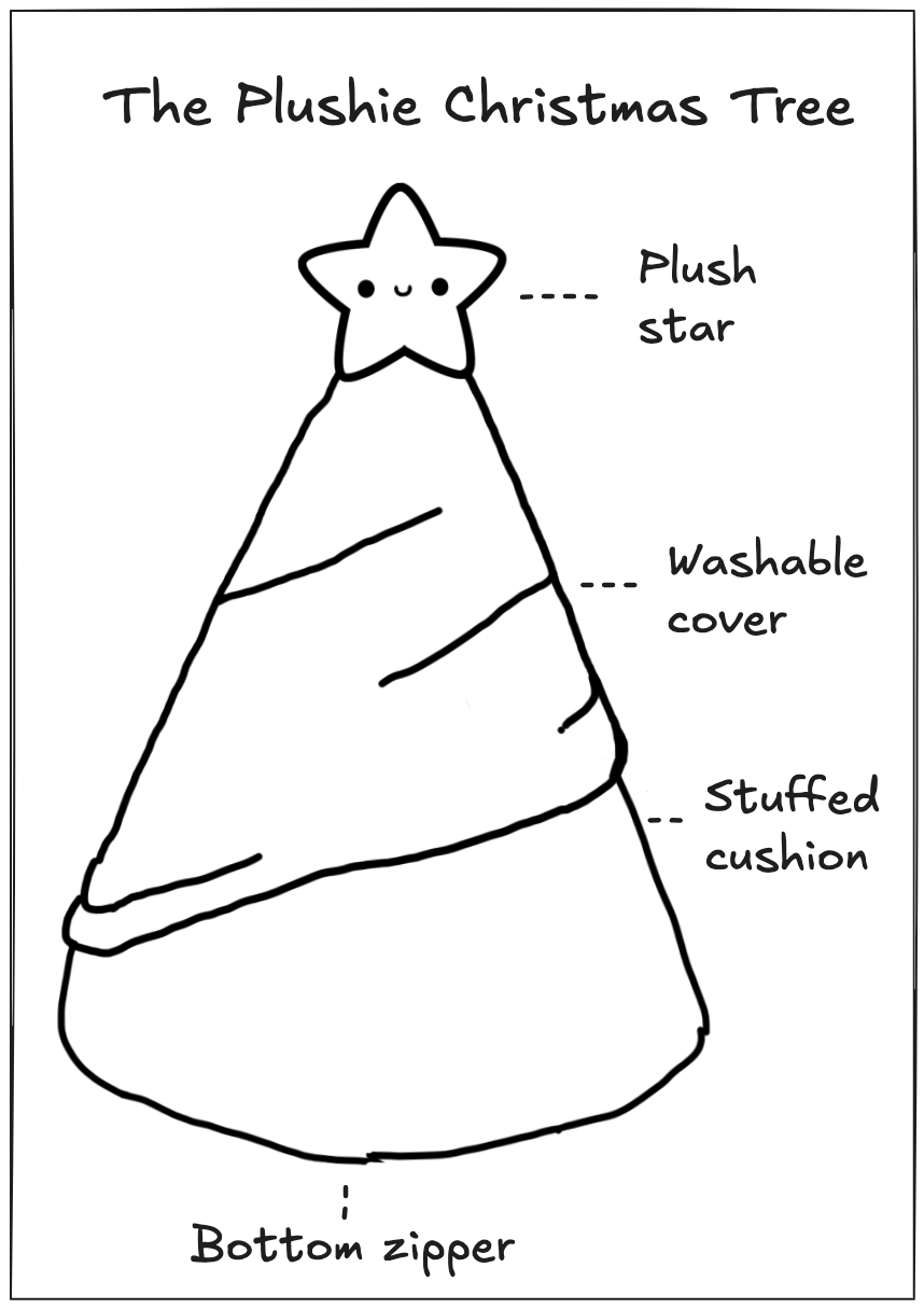 The Plushie Christmas Tree is a soft, reusable decoration that brings charm to your holiday setup. Sized to your preference, it features a plush, fluffy cover and a customizable star topper, perfect for adding personal touches like embroidery. Sew it once, and enjoy decorating it for the years to come.