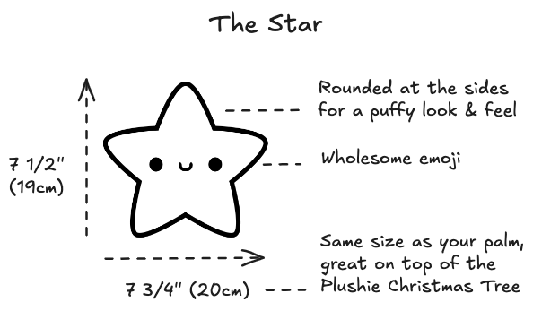 Don't forget to hand tack the star onto the Plushie Christmas Tree! This Plushie Tree is just the beginning—it opens the door to endless decorating possibilities! The Star is only the STARter, and there’s so much more you can do to decorate it year after year. Sew on buttons, add ribbons, or craft ornaments—it’s all up to you. Plus, since it’s reusable, it’s an eco-friendly and hassle-free alternative to traditional decorations. So go ahead, enjoy your cozy, charming tree, and make it a centerpiece for many festive seasons to come!